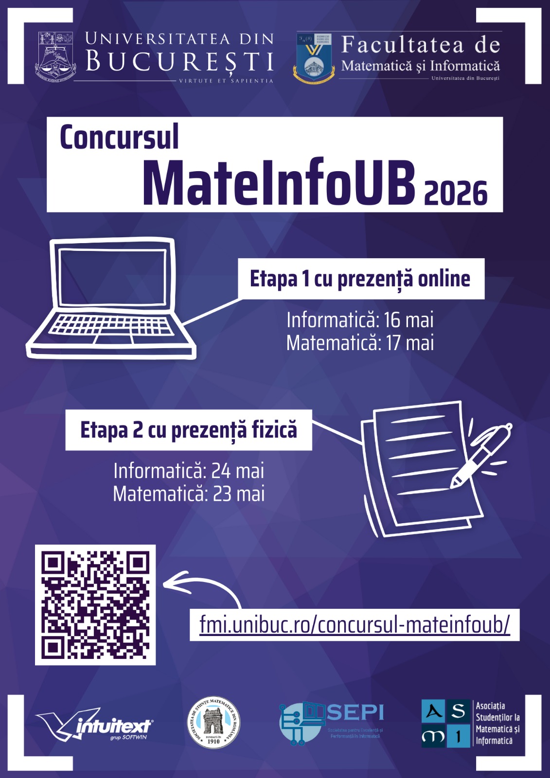 - se va desfășura cu prezență fizică în incinta Facultății de Matematică și Informatică